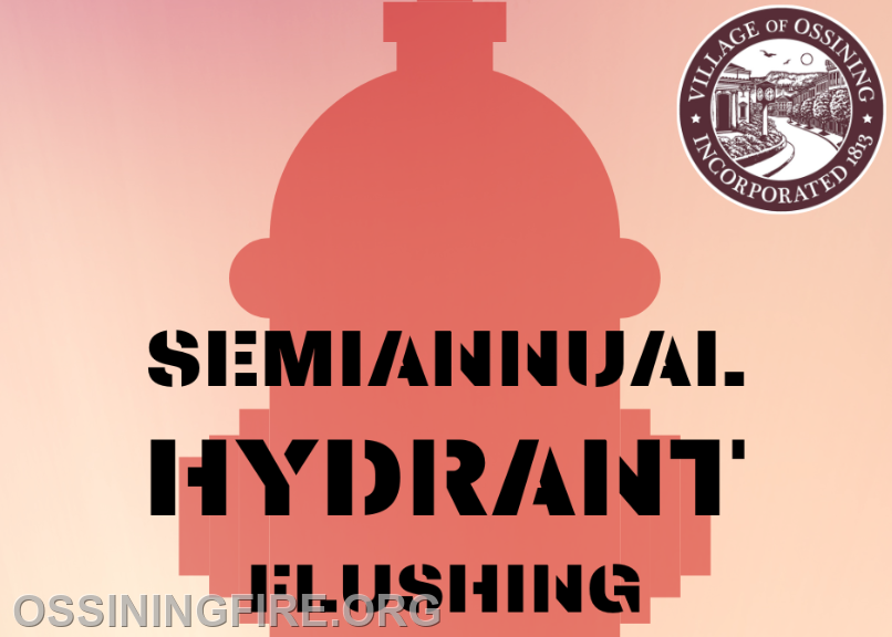 The Village of Ossining Water Department will start their semiannual hydrant-flushing program on Monday morning, April 6th, 2026.