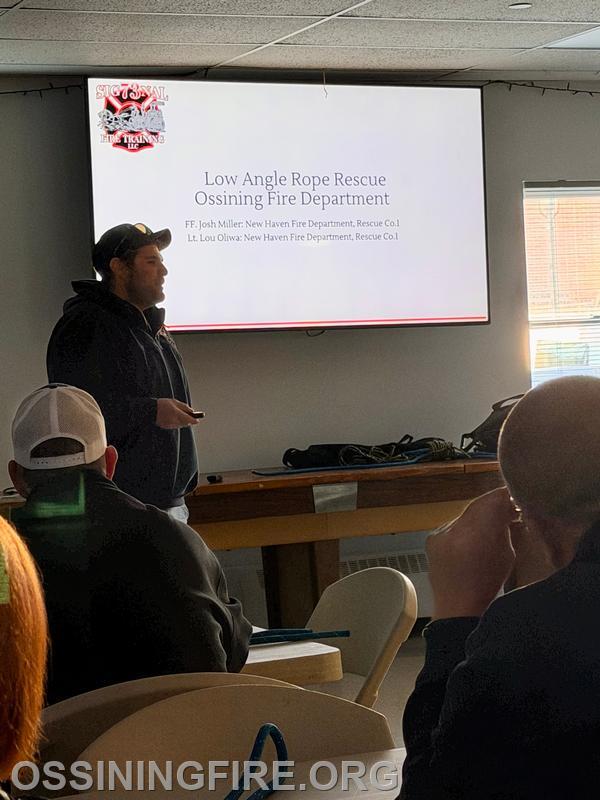 Yesterday morning, members spent the morning reviewing and training on Low Angle Rope Rescue with Signal 73 Fire Training LLC. The use of ropes, knots, and the hardware associated with this discipline is most definetly a perishable skill. The need for this training is crucial for those high risk/low frequency scenarios we may encounter on an incident.