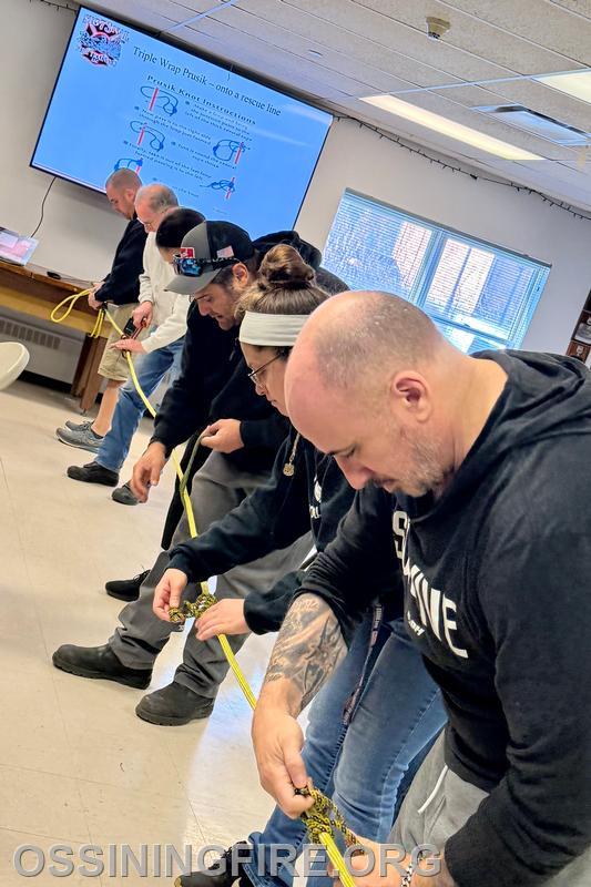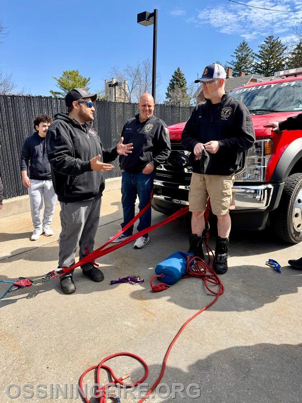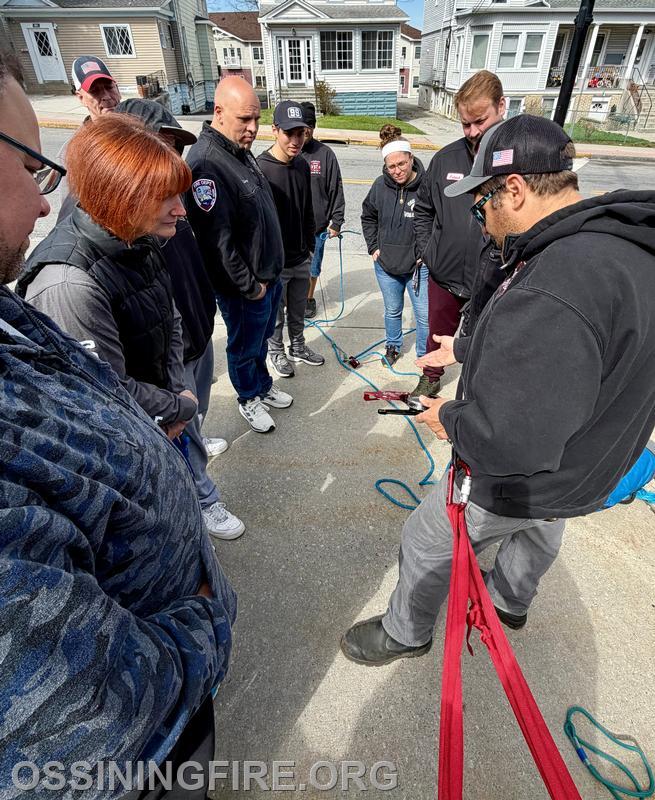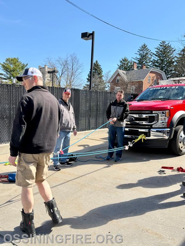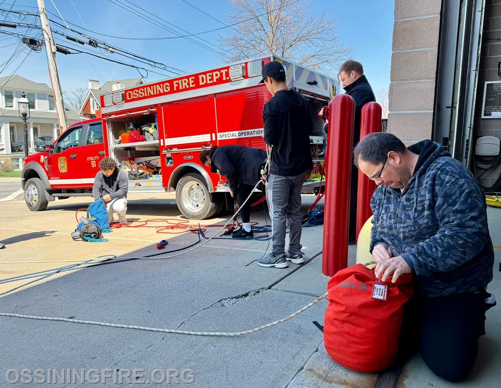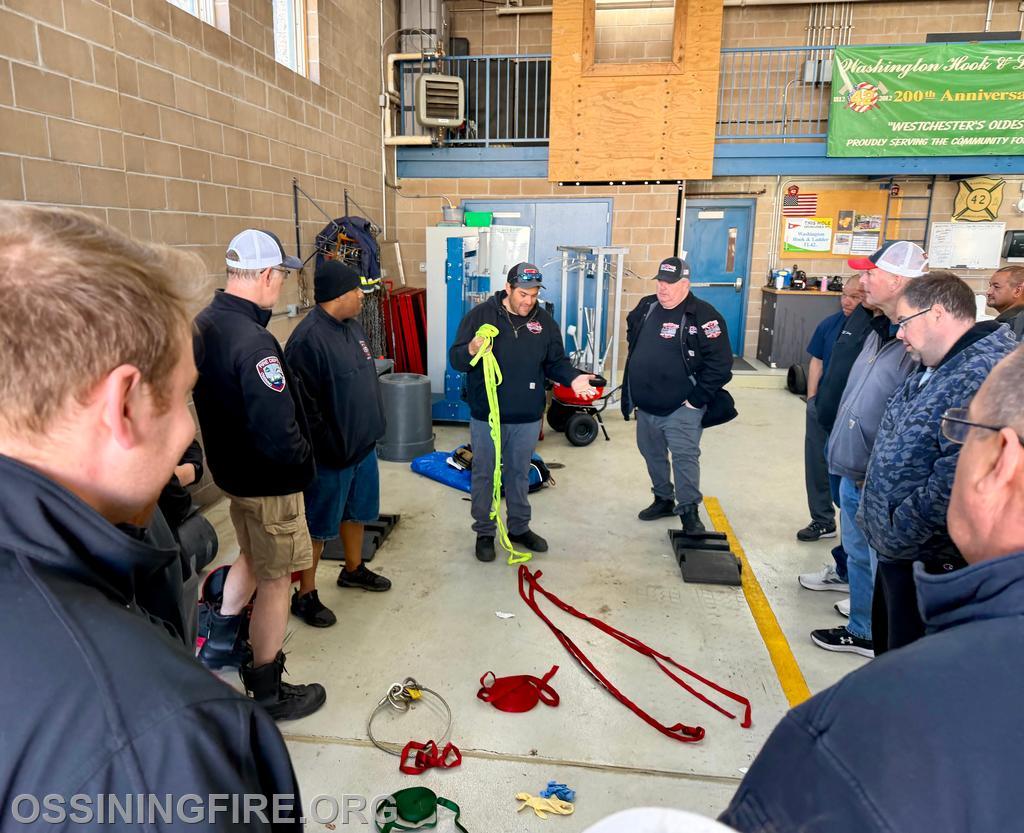 The morning started out with basic knots review and a short classroom session reviewing identifying the hardware and necessary equipment needed for the different applications. We then went hands on reviewing the equipment we carry on our apparatus and how to quickly and safely deploy it in a low angle rescue or recovery situation.