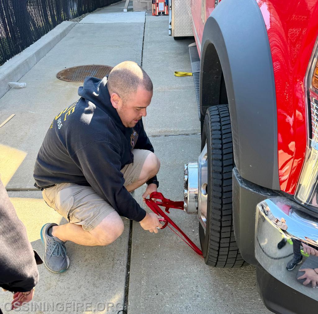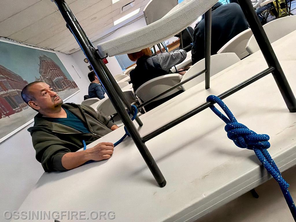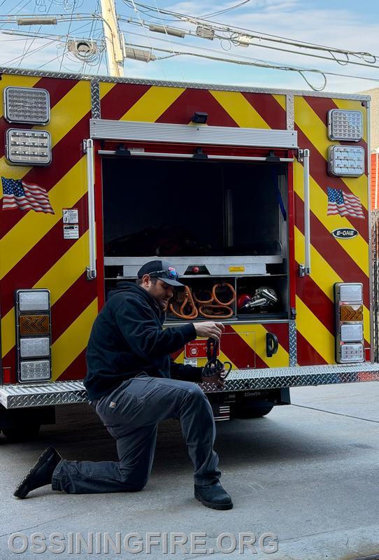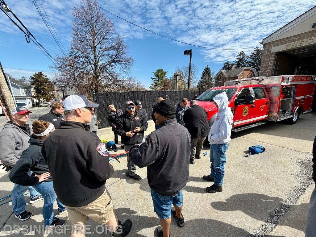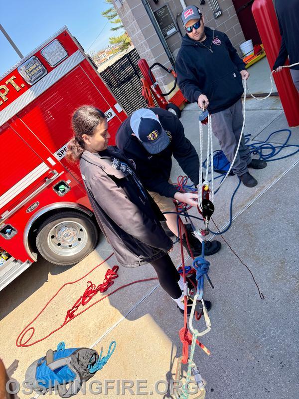 The morning started out with basic knots review and a short classroom session reviewing identifying the hardware and necessary equipment needed for the different applications. We then went hands on reviewing the equipment we carry on our apparatus and how to quickly and safely deploy it in a low angle rescue or recovery situation.