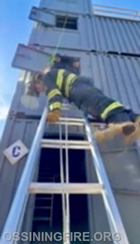 In the attached pictures, Brayden is conducting a Head First Ladder Bail-out and begin his descent from an upper story deploying his Personal Escape System or “Bailout Kit”. This is the continued displaying of what our dedicated members go through during their initial training to that end goal of being classified as an interior member. To some terrifying, to others pretty cool. The extremely long and time consuming course has the safe operation in focus of the Firefighter themselves, the others on the fireground, and the reassurance they are ready to act to protect lives & property.